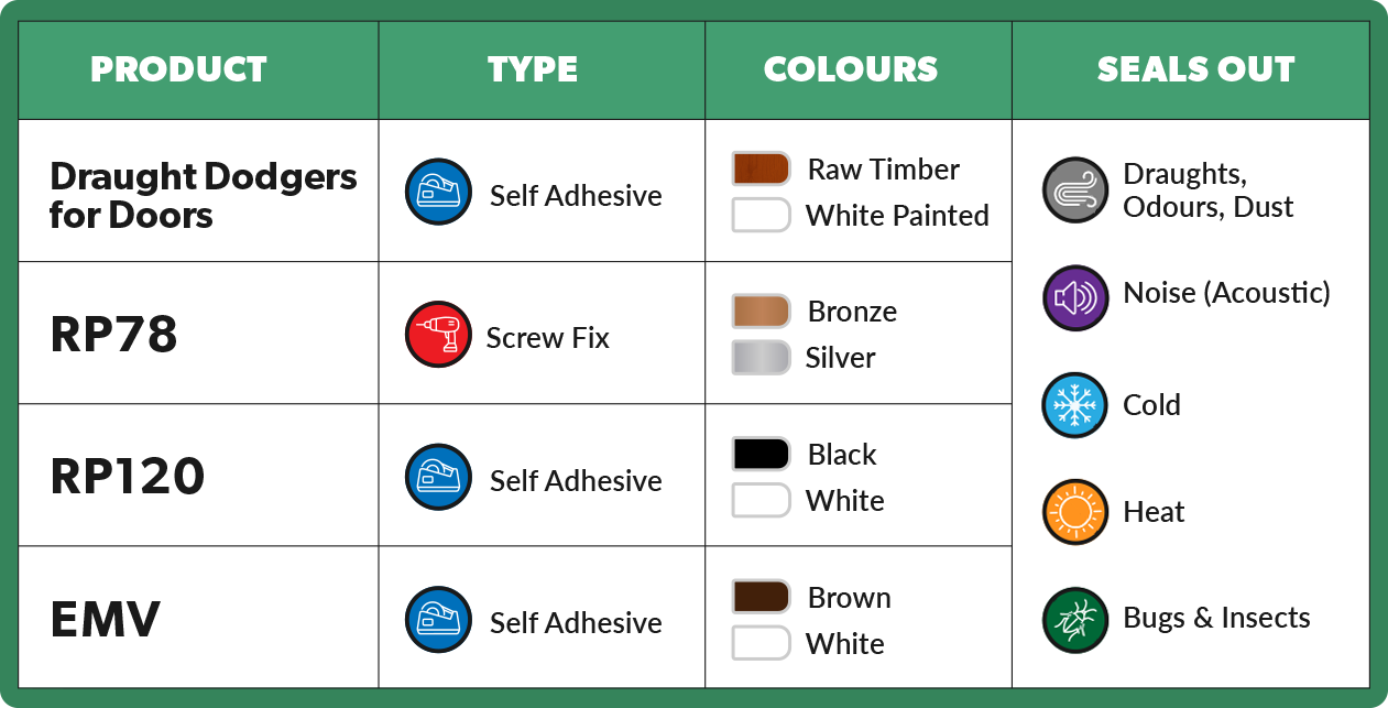 ● Don’t expect EMV to stop door obanging in the wind (use Draught Dodgers instead)